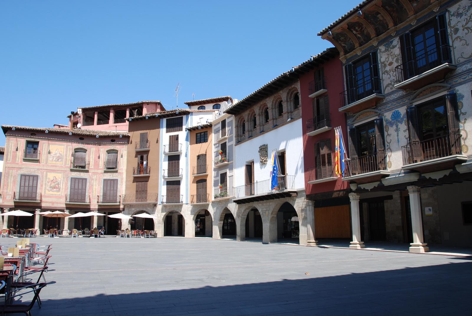 La Plaza Mayor fue creada para albergar uno de los recursos económicos más importantes de la villa, el comercio, instalándose bajo sus porches los comerciantes que iban a los mercados y a las ferias. Realizada durante la ampliación urbanística del siglo XVI, gracias al aumento demográfico y económico de Graus, está catalogada como Bien de Interés Cultural desde 1975.